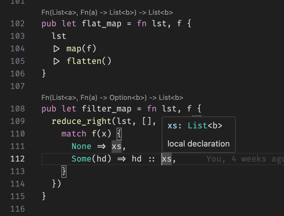 Diclaimer: a careful reader might notice that the aforementioned steps have scope hygiene issues. For example, if map had a parameter called f instead of mapper, the transformation would have ended up with semantically different programs. This issue is solved by running the optimization steps after all the static analysis (such as scope resolution) is terminated. This also gives room to other optimizations that need to be aware of the types